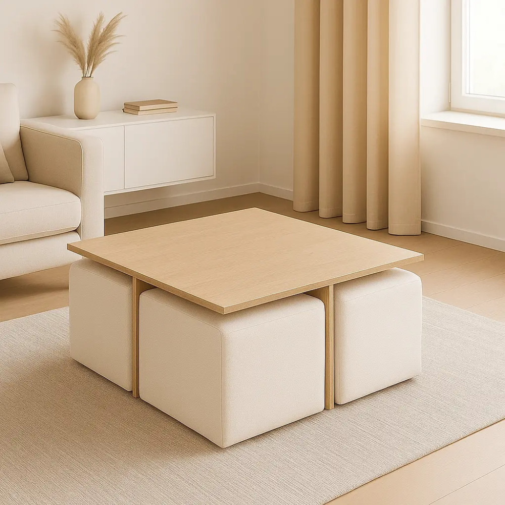 چندمنظوره: میز پذیرایی + نشیمن موقت + زیرپایی در یک محصول.