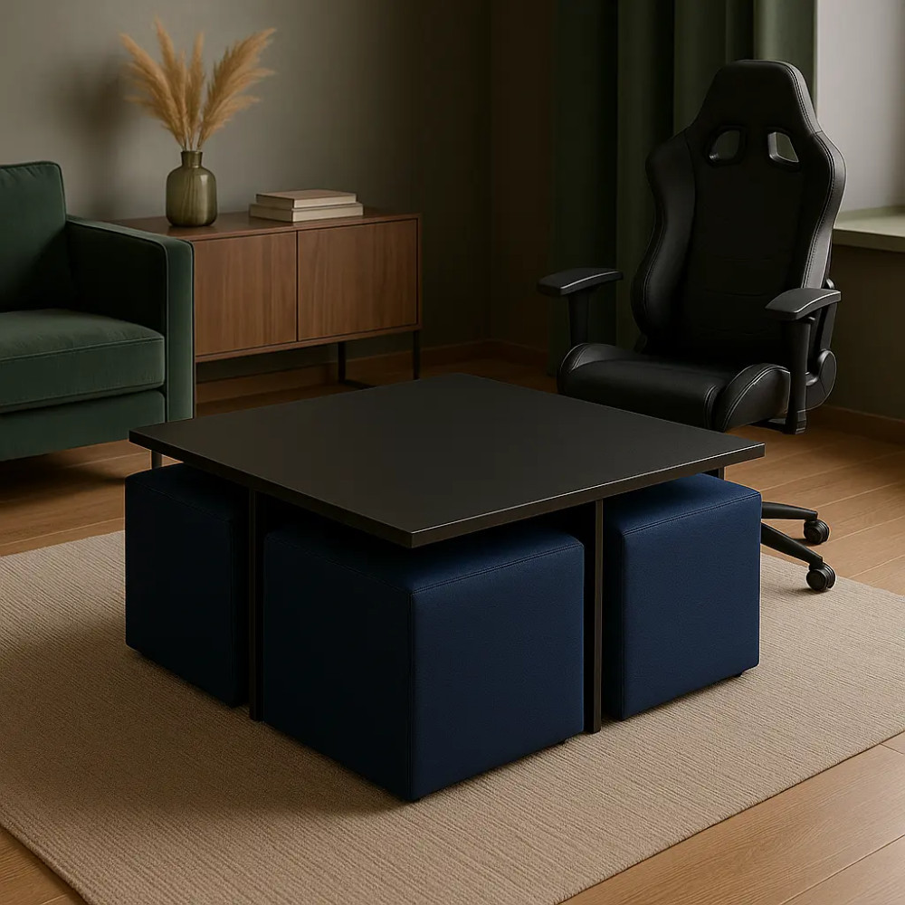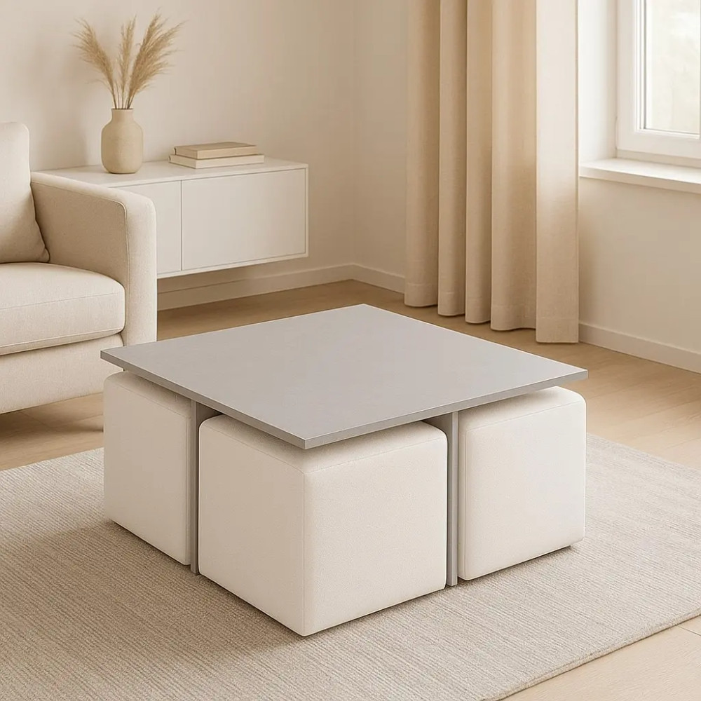 طراحی کمجا: پافها درون میز قرار میگیرند و فضای اضافه اشغال نمیکنند.