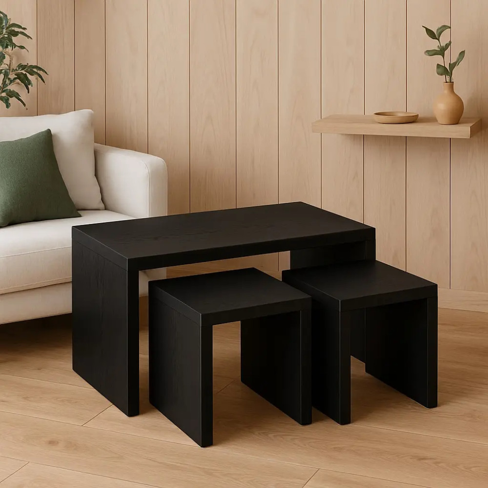 این محصول بهصورت یک ست سهتکه عرضه میشود که شامل یک میز جلومبلی اصلی و دو میز عسلی هماهنگ و کمجا است.