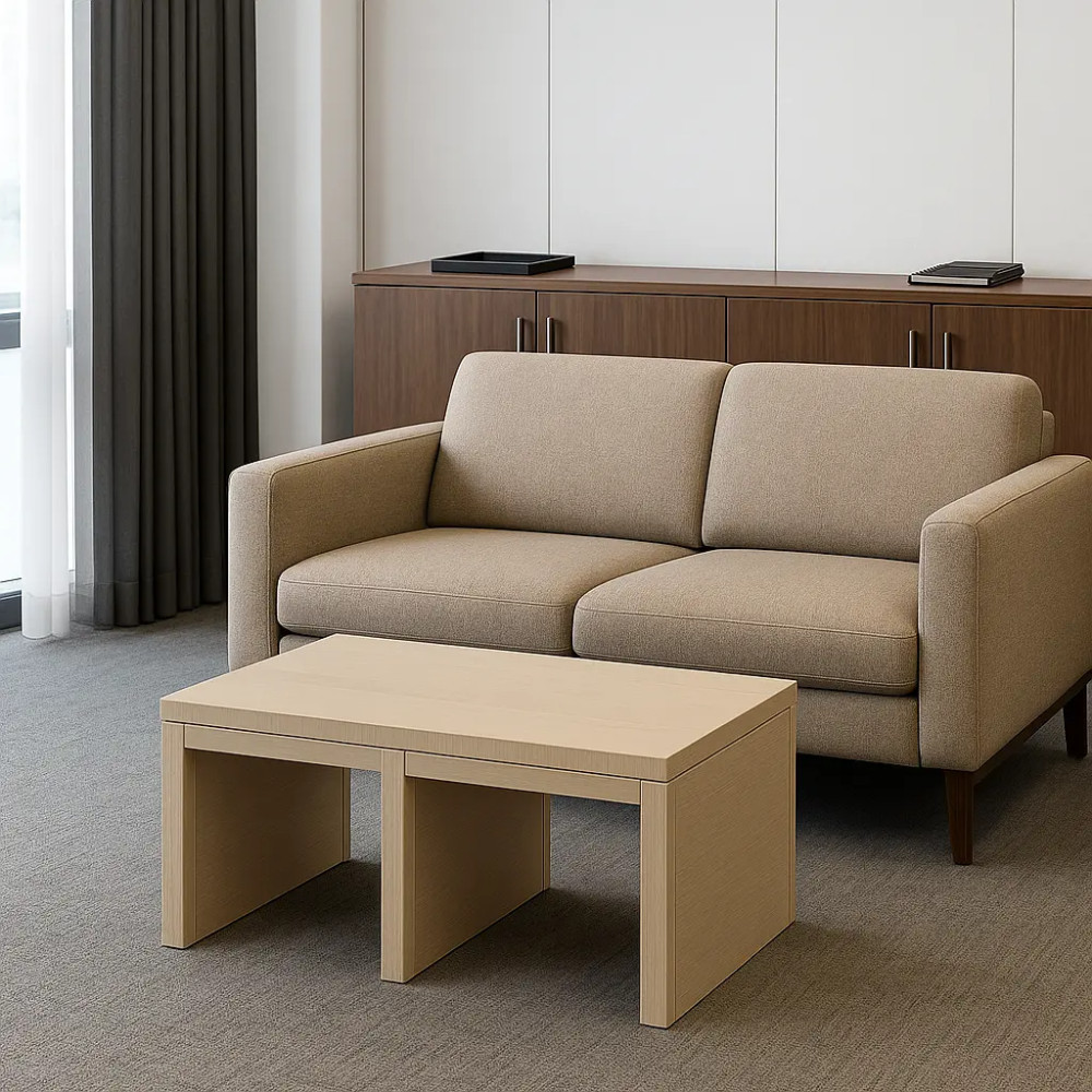 چیدمان انعطافپذیر: میتوانید میزها را کنار هم برای ایجاد سطح بزرگتر قرار دهید یا بهصورت جداگانه در فضا پخش کنید.