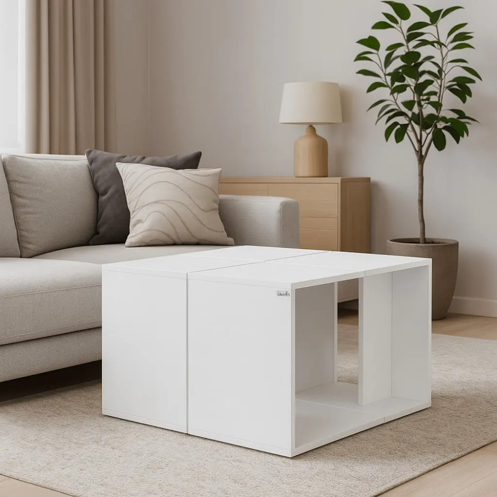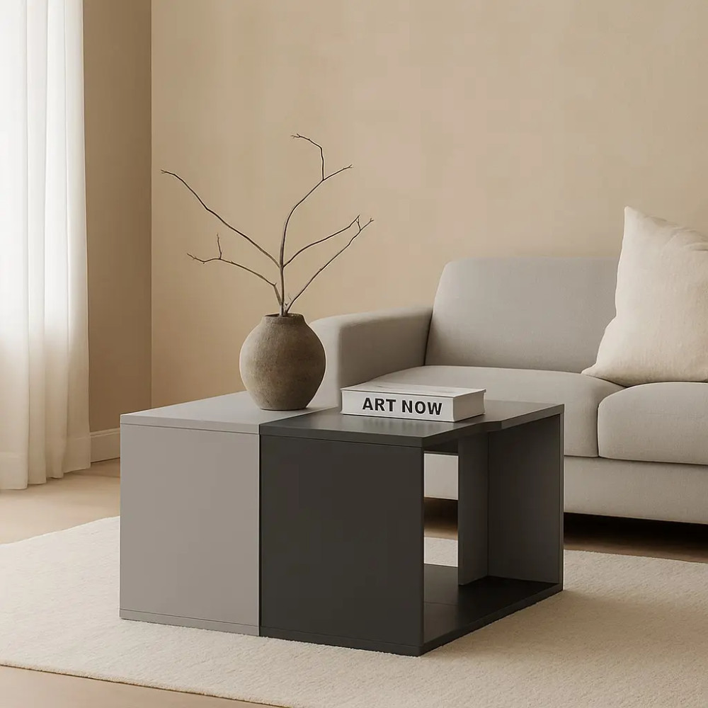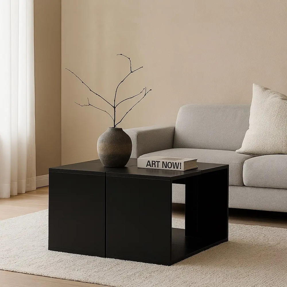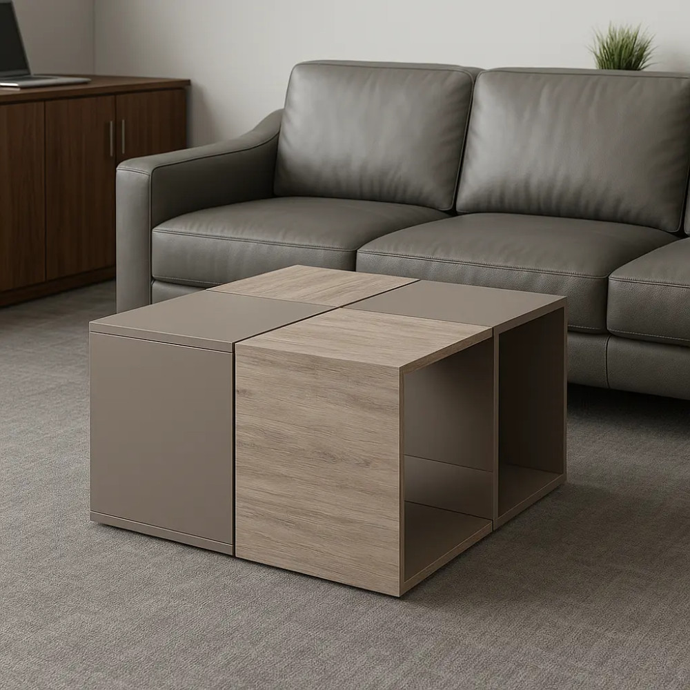طراحی مدرن و منحصربهفرد: ترکیب چهار میز عسلی که در کنار هم یک میز جلومبلی کامل میسازند.